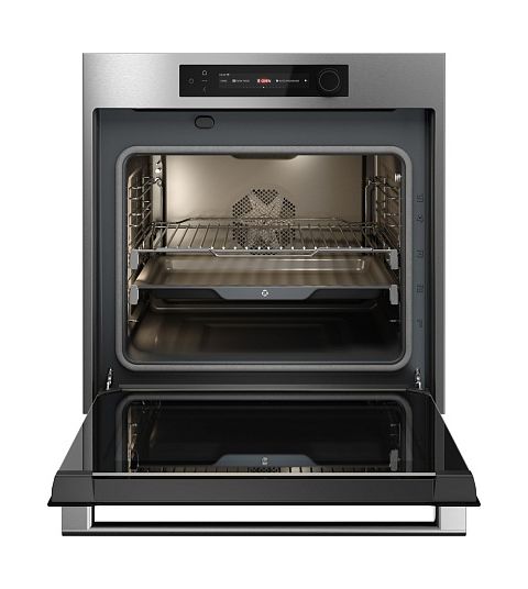 Комплектация включает два противня и решётку, а наличие термощупа позволяет контролировать процесс приготовления блюд.