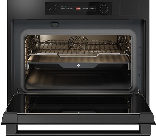 Цвет графит подчёркивает премиальную отделку, а четырёхслойная дверца со съёмным стеклопакетом обеспечивает теплоизоляцию и упрощает уход. Сенсорное управление и цветной TFT-дисплей предоставляют доступ к 127 автоматическим программам и 15 режимам нагрева.