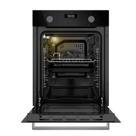 - Полный визуальный контроль: Яркое внутреннее освещение позволяет наблюдать за процессом приготовления через стекло дверцы, не выпуская тепло и не нарушая температурный режим.