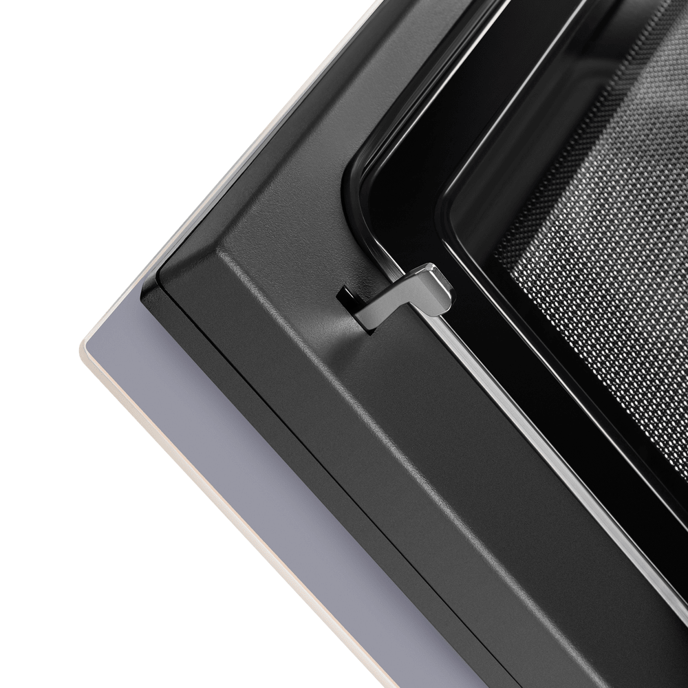 • Безопасность для семьи и интерьера: Технология «холодный фронт» в конструкции дверцы обеспечивает эффективную теплоизоляцию. Внешняя поверхность духовки не нагревается до опасных температур, что исключает риск ожогов и защищает кухонную мебель от перегрева. Блокировка от детей предотвращает случайное изменение настроек.