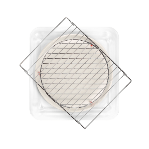 • Круглая решетка-подставка для гриля: Специальная решетка, предназначенная для использования в режиме гриля. Она приподнимает продукт, позволяя жиру стекать вниз, и обеспечивает циркуляцию горячего воздуха для равномерного приготовления и красивой корочки со всех сторон.