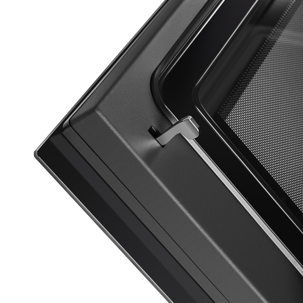 • Панорамное внутреннее стекло: Широкое и прозрачное стекло в дверце обеспечивает максимальный обзор содержимого камеры, что удобно для контроля за процессом приготовления, особенно при выпечке.