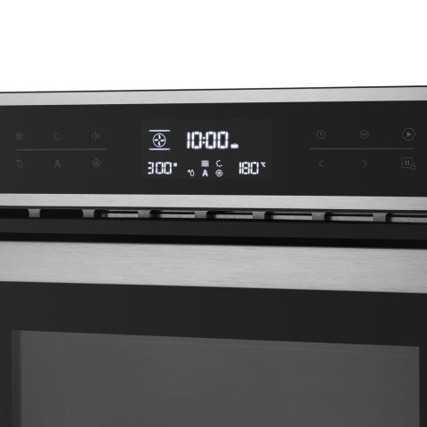 • Отличный обзор и эргономика: Панорамное внутреннее стекло дверцы обеспечивает широкий обзор камеры, позволяя визуально контролировать процесс приготовления без потери тепла от открывания дверцы.