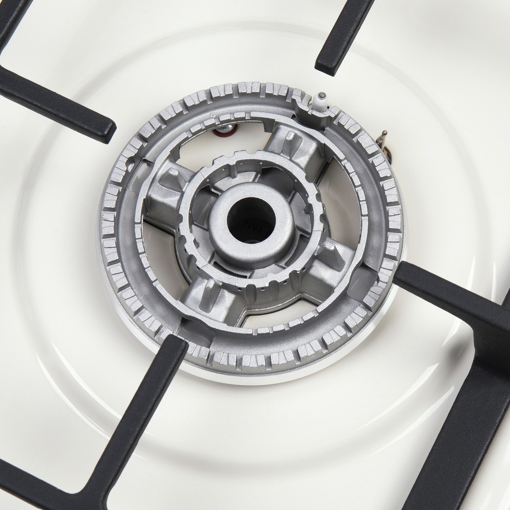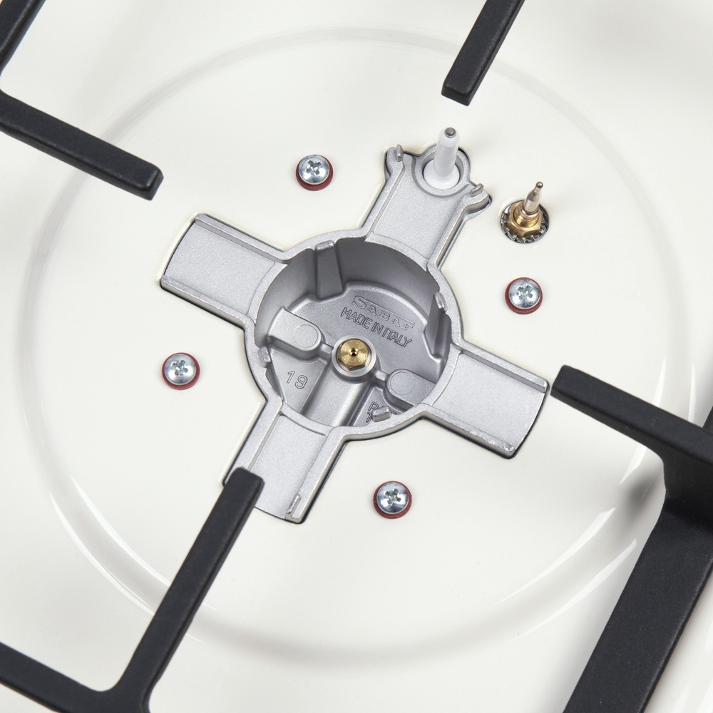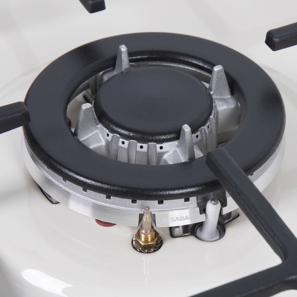 - Конфорки «SABAF» разной мощности: Разнообразие в диаметре и мощности конфорок (обычно включая одну малую, одну среднюю и WOK-горелку) позволяет гибко подбирать зону нагрева под размер посуды и тип блюда, обеспечивая экономию газа и оптимальный результат.