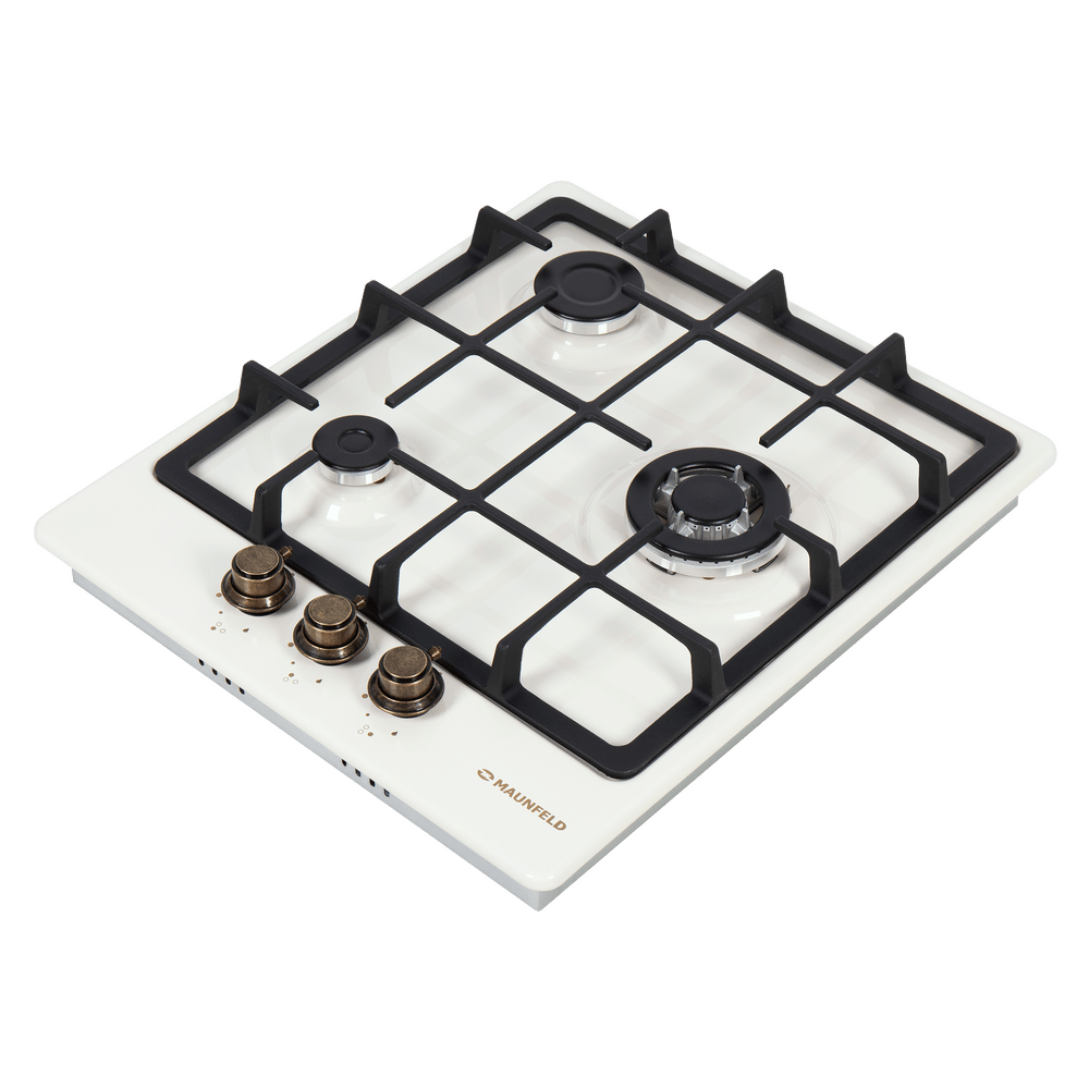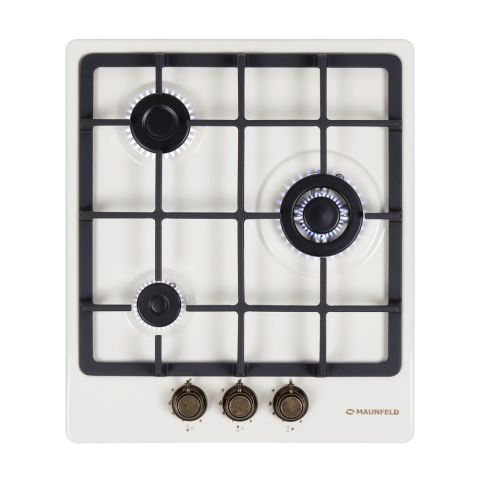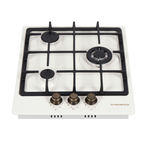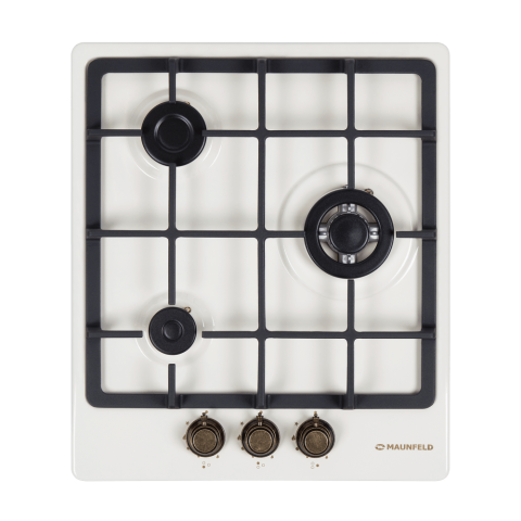 Газовая варочная панель Maunfeld EGHE.43.33CBG.R/G — это элегантное и надежное решение, выполненное из металла с покрытием из высококачественной эмали цвета «слоновая кость». Она оснащена тремя итальянскими конфорками «SABAF» разной мощности, включая профессиональную WOK-горелку. Каждая конфорка имеет встроенный автоматический электроподжиг в ручке. Дополнительным преимуществом является комплектация жиклерами для баллонного газа Sourdillion (Франция). Ключевые особенности модели — чугунные решетки, газ-контроль и цельнометаллические поворотные ручки.