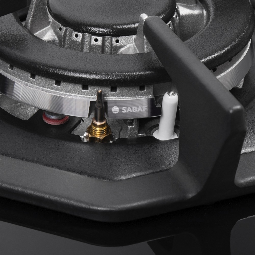 - Высококачественные горелки SABAF: Оснащение проверенными итальянскими горелками SABAF гарантирует эффективное и экономичное сгорание газа, стабильное пламя во всех режимах мощности и длительный срок службы варочной панели.