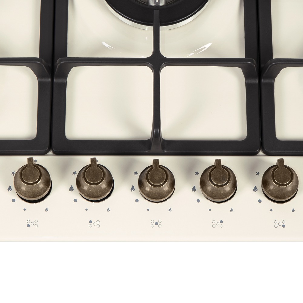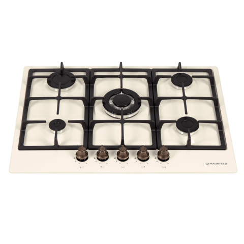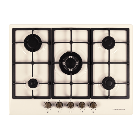Газовая варочная панель Maunfeld EGHE.75.33CBG2.R/G в благородном цвете «слоновая кость» — это модель из коллекции «Retro», сочетающая винтажную эстетику с современными технологиями. Прибор оснащен пятью конфорками разной мощности, включая профессиональную WOK-горелку с тройным пламенем. Управление осуществляется с помощью цельнометаллических поворотных переключателей бронзового цвета, подчеркивающих ретро-стиль. Панель обеспечивает высочайший уровень безопасности благодаря системам газ-контроля и электроподжига, а использование надежных итальянских горелок «SABAF» гарантирует эффективность и долговечность. Универсальность подключения (магистральный или баллонный газ) делает модель идеальной для любого типа кухни.