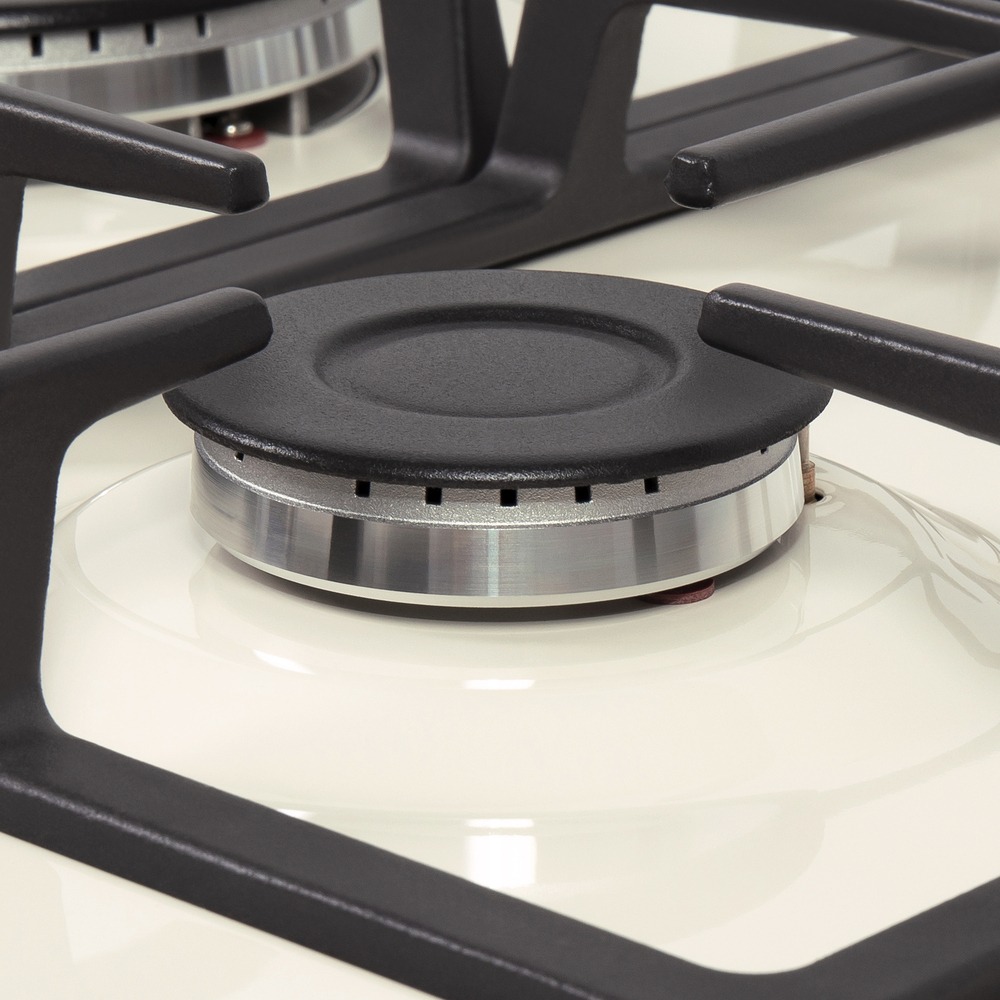- Полноценный газ-контроль на всех конфорках: Каждая горелка оборудована термопарой. При затухании пламени датчик остывает, и электромагнитный клапан мгновенно перекрывает поток газа, предотвращая его утечку.
