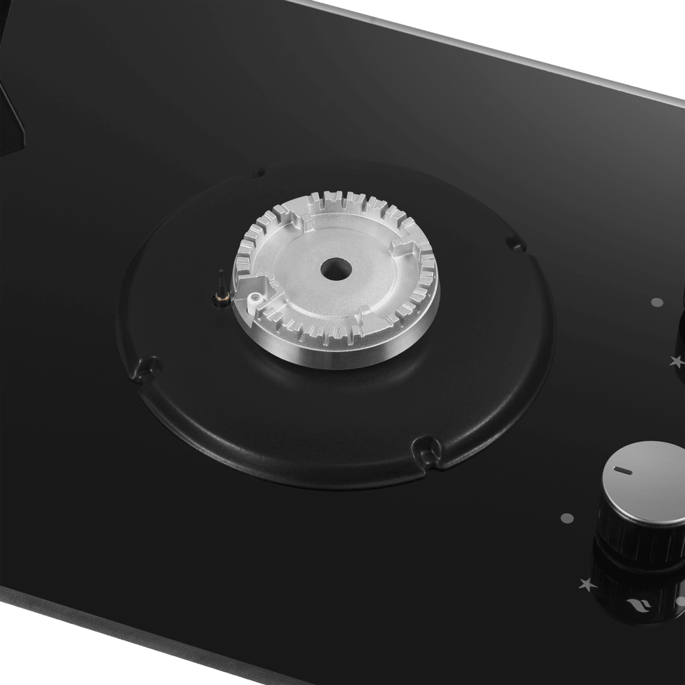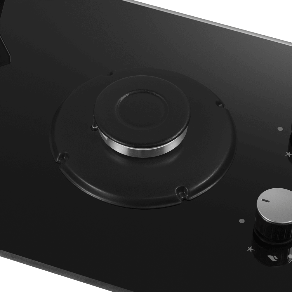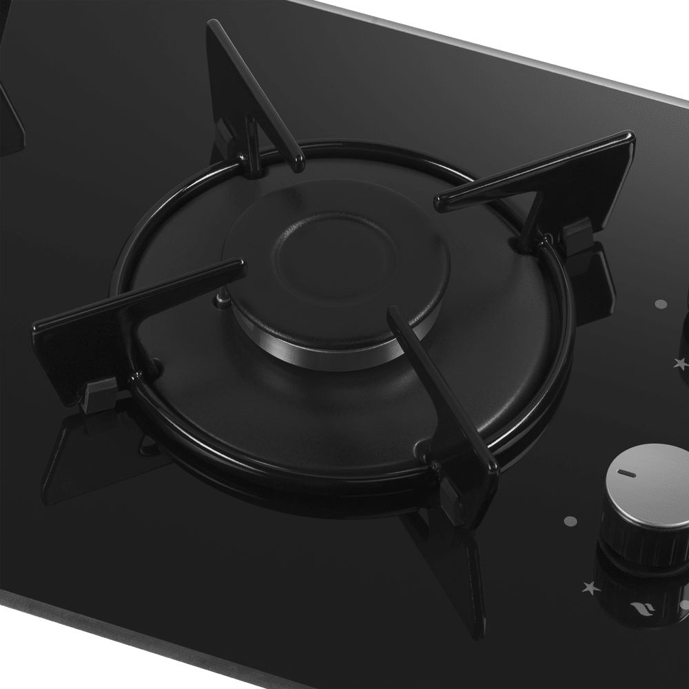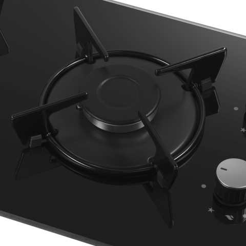 - Поверхность «газ на стекле»: Прочное закаленное стекло высокой термостойкости служит основой панели. Оно устойчиво к механическим воздействиям, перепадам температур и значительно упрощает уход по сравнению с традиционными эмалированными поверхностями.
