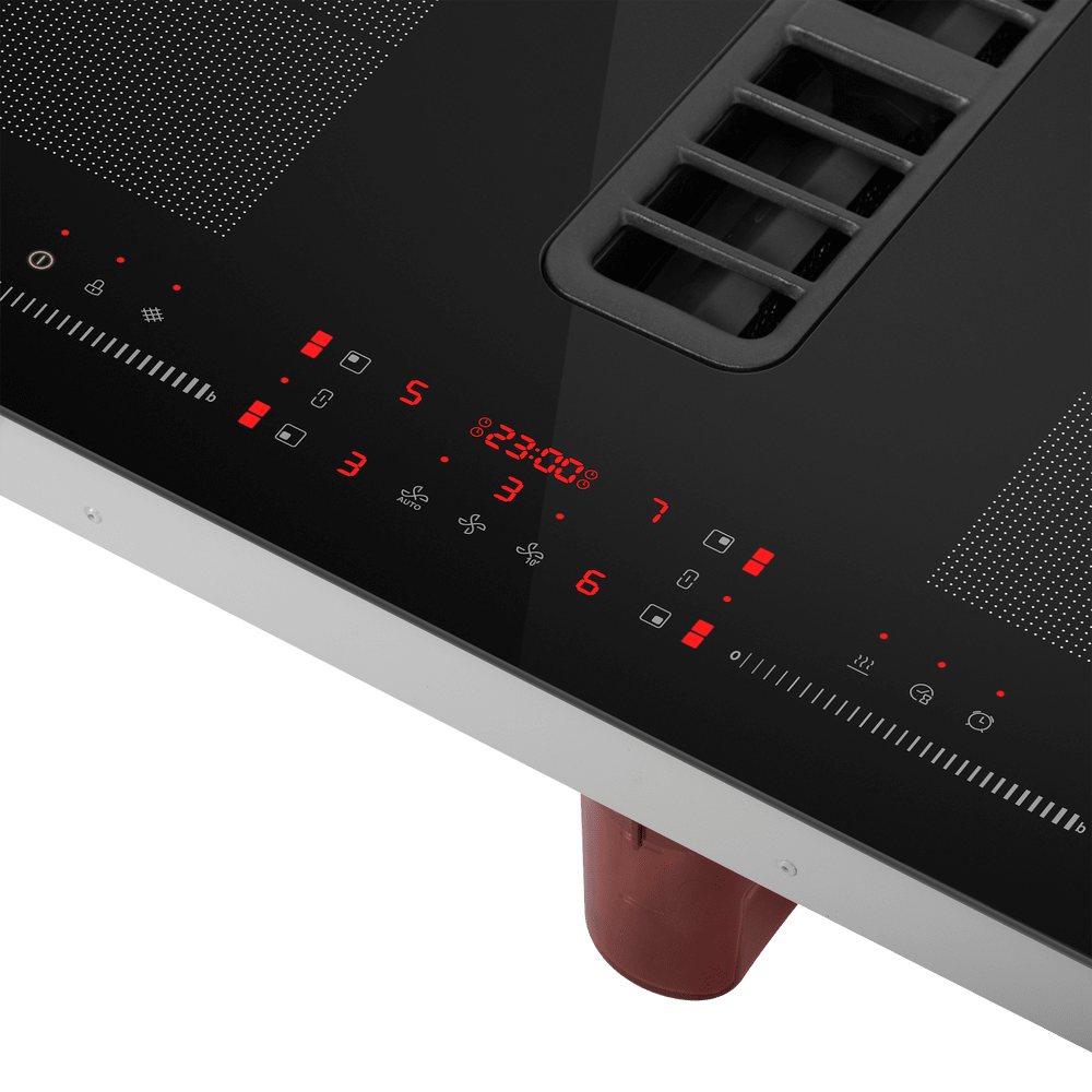 - Большое количество функций и удобство в использовании: Панель оснащена профессиональным набором функций, включая функцию Bridge для объединения конфорок, Booster для быстрого нагрева, таймер для каждой зоны, детектор диаметра посуды и технологию непрерывного нагрева. Интуитивное сенсорное управление делает использование простым и комфортным.