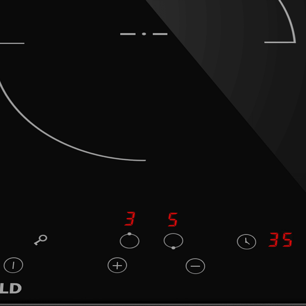 - Эффективный и практичный нагрев: Две Hi-Light конфорки (передняя: 1800 Вт, Ø200 мм; задняя: 1200 Вт, Ø165 мм) обеспечивают быстрый разогрев и покрывают основные кулинарные задачи. Широкий диапазон мощности позволяет работать с посудой разного размера — от маленьких сотейников до больших кастрюль.