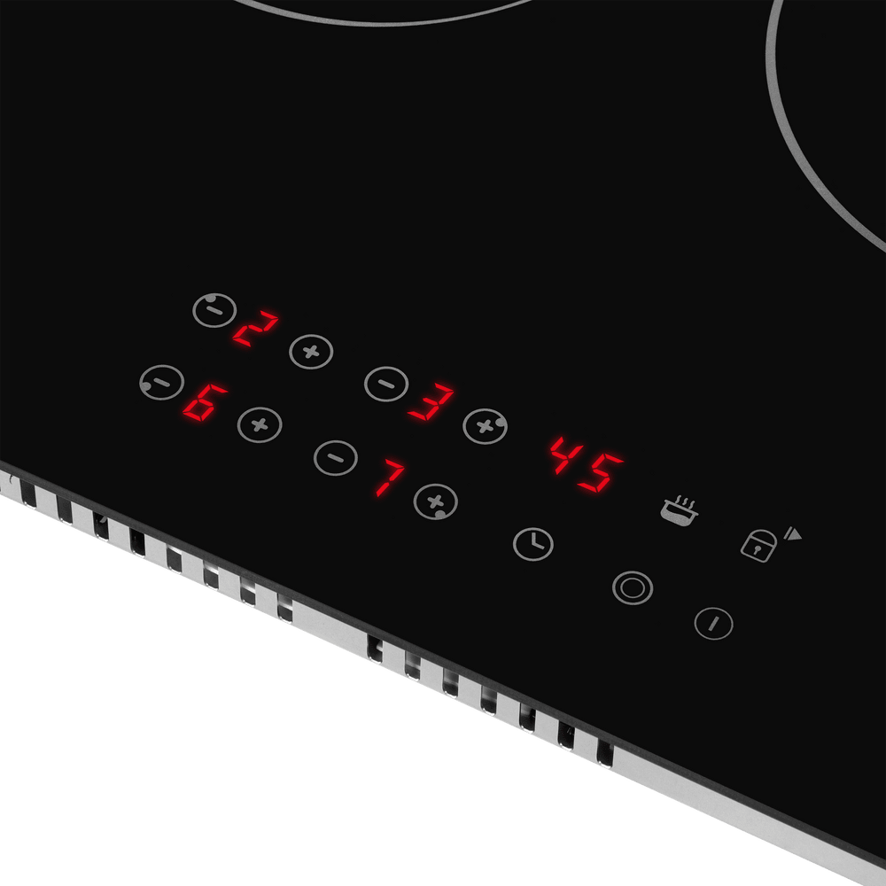 - Надежная безопасность для семьи с детьми: Функция «Замок от детей» (Child Lock) надежно защищает от случайной активации или изменения настроек панели. Это гарантирует, что любопытные дети не смогут включить конфорки или изменить параметры готовки, обеспечивая полное спокойствие родителей.