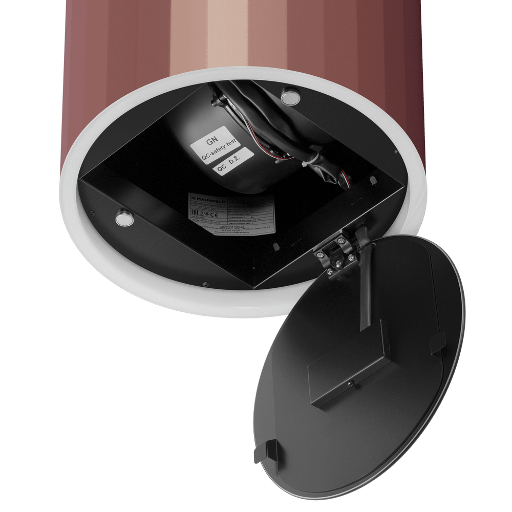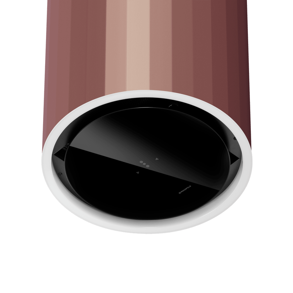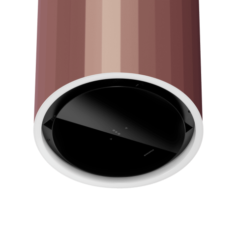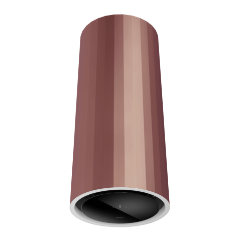 - Элегантный цилиндрический дизайн в розовом золоте: Роскошный розово-золотой оттенок в сочетании с плавными линиями цилиндрического корпуса превращает вытяжку в центральный декоративный элемент, придающий кухне особый стиль и изысканность.