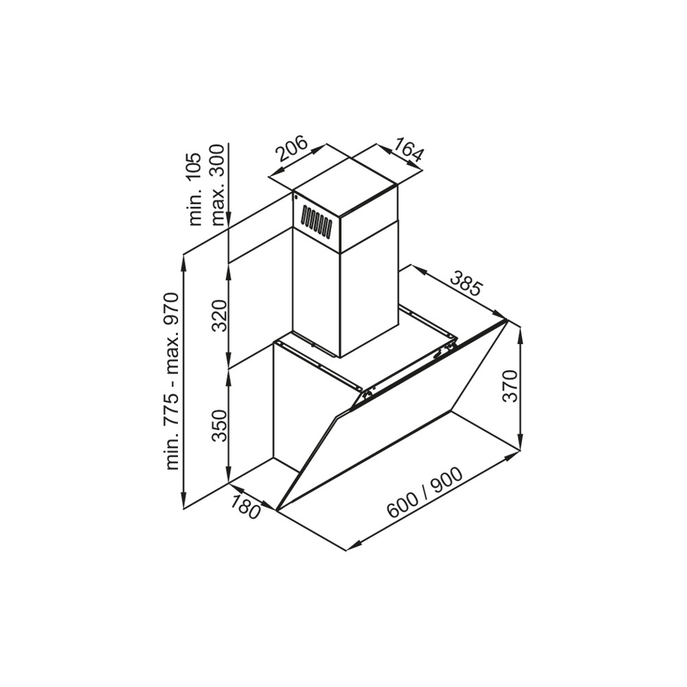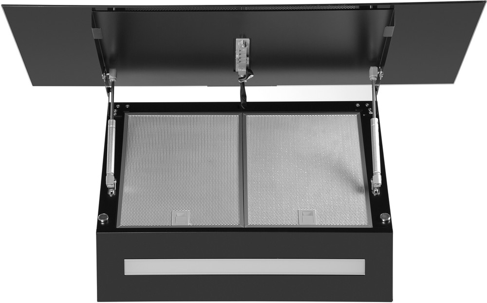 - Широкий корпус 90 см: Полностью покрывает зону над крупной варочной панелью для максимального захвата испарений.