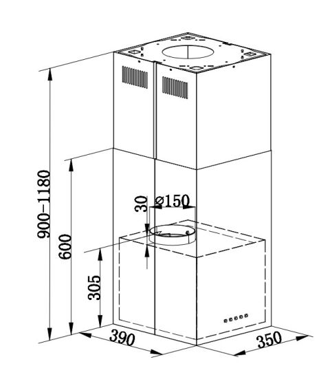 • Компактность и островной монтаж: Ширина всего 35 см делает вытяжку визуально легкой и ненавязчивой. Предназначена для потолочного монтажа над островной плитой, становясь стильным центральным элементом кухни.
