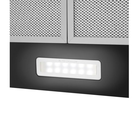 - Стильный дизайн и компактные размеры: Лаконичный черный корпус прямоугольной формы гармонично вписывается в современный интерьер, а компактные габариты позволяют установить вытяжку даже на кухне с ограниченным пространством.
