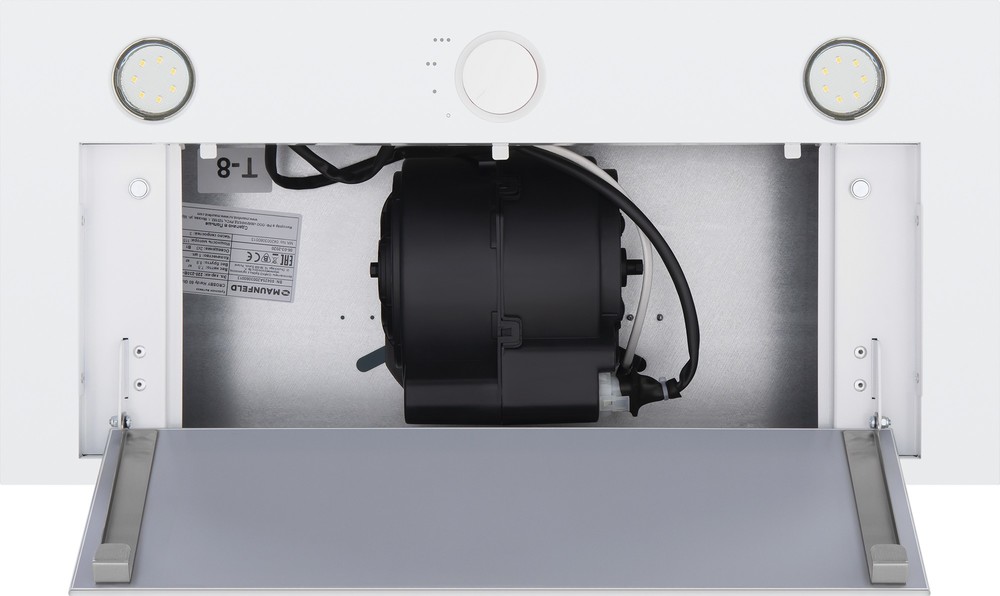 - Светодиодное освещение: Две яркие светодиодные лампы, встроенные в окантовку вытяжки, обеспечивают отличное освещение варочной поверхности, делая процесс приготовления пищи более удобным, безопасным и комфортным даже в вечернее время.