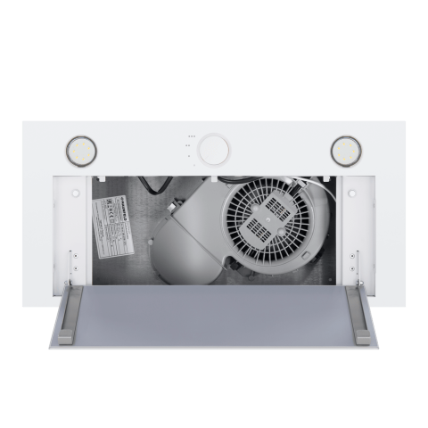 - Встраиваемая конструкция: Модель полностью интегрируется в кухонный шкаф, что позволяет сохранить целостность и стиль интерьера, эффективно используя пространство над варочной панелью.