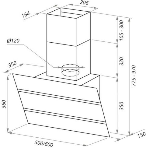 • Особенности: Периметральное всасывание, откидная декоративная панель, регулируемый вылет