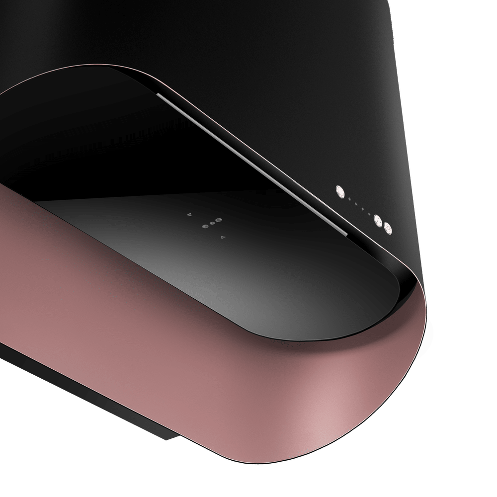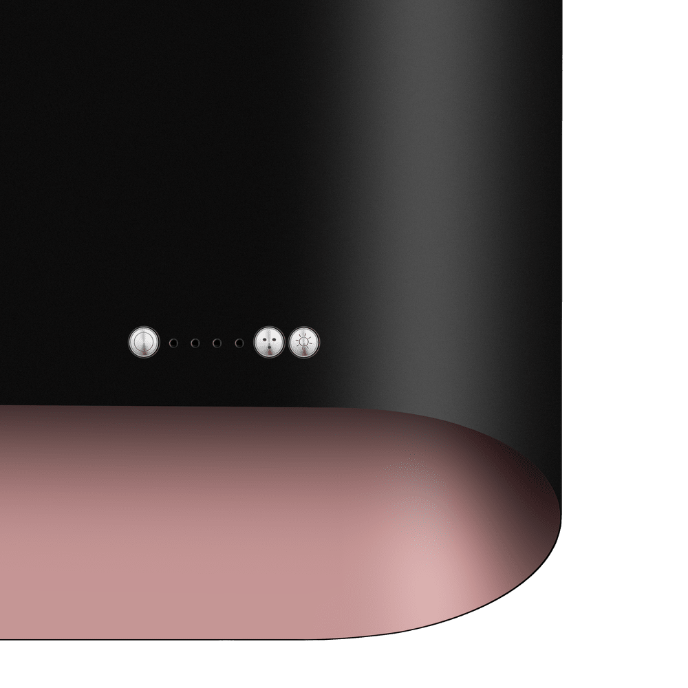 - Элегантный дизайн с черным цветом и розовым золотом для стильного интерьера: Сочетание глубокого черного антрацита и теплого розового золота в дизайне цилиндрического корпуса создает эксклюзивный и модный акцент. Такая вытяжка станет центральным декоративным элементом, подчеркивающим изысканный вкус и превращающим кухню в пространство с индивидуальным характером.